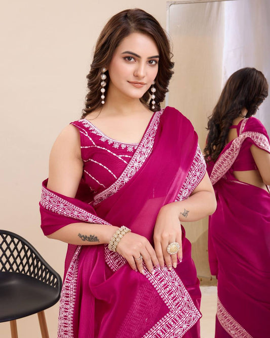 Elegant Premium Soft Zimmy Chu Riceptions Wear Special Rani Color Saree.