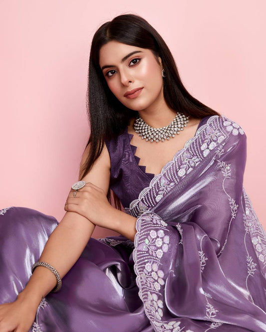 Impressive Look Sequence Party Wear Lavender Saree Collection.