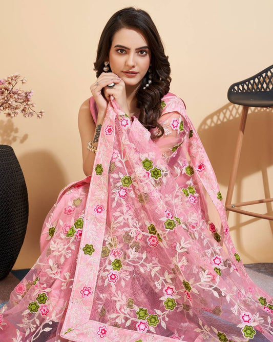 Impressive Look Premium Heavy Soft Net Pink Saree.