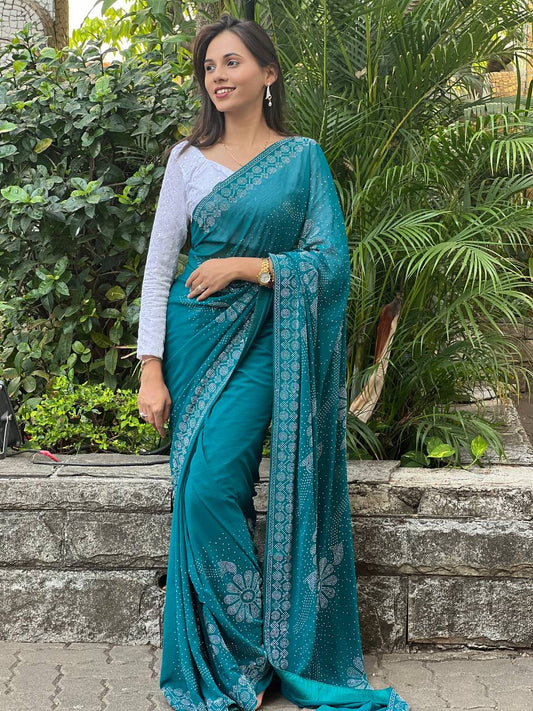 Attractive Look Beautiful Diamond Work Saree Collection.