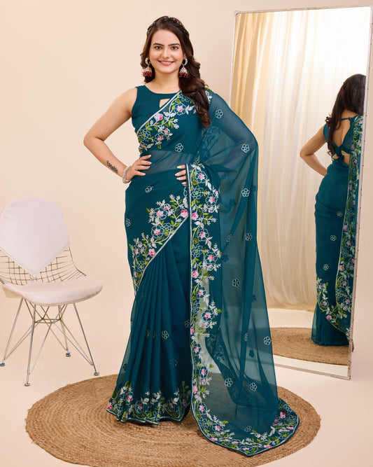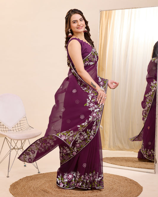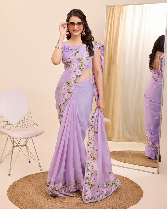 Attractive Floral Design 1-Minute Ready To Wear Saree Collection.