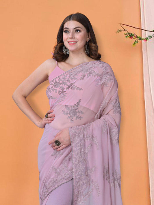 Artistic 1-Minute Ready To Wear Pink Shade Georgette Saree.