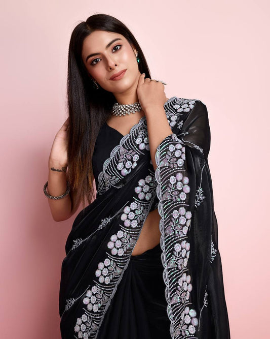 Party Wear Special Black Premium Soft Zimmy Chu Silk Saree.