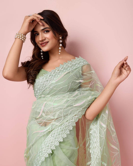 Pista Color Occasions Wear Special Premium Soft Net Saree.