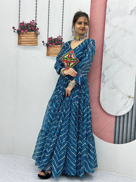 Beautiful Gamthi Work Bandhni Gown Collection.