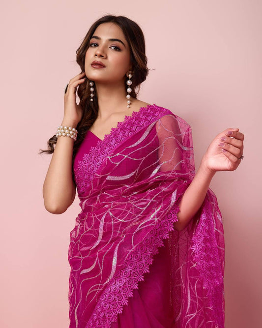 Beautiful Pink Colour Soft Net Sarees.