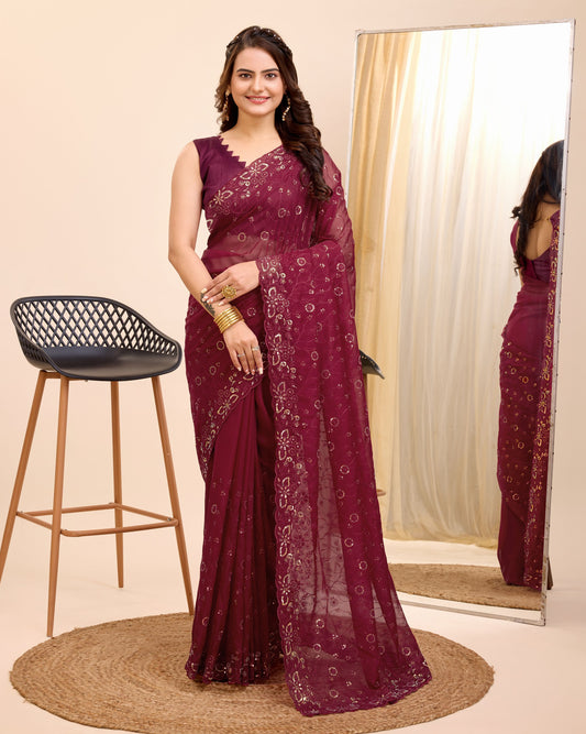 Beautiful Premium Soft Organza Silk With Sequences Embroidery Work Saree.