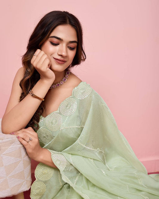 Beautiful Premium Soft Organza Silk Pista Color Saree.