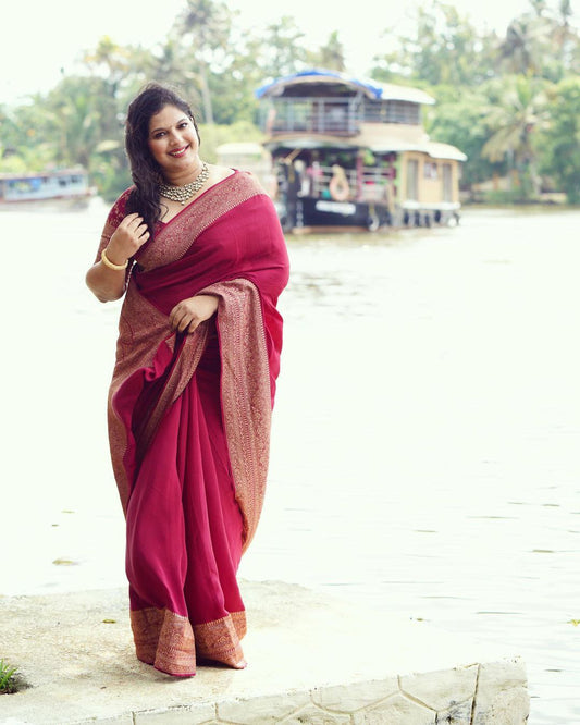 Most Trendy Wedding Special Red Banarasi Soft Silk Saree.
