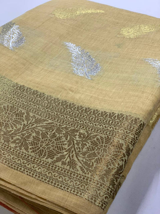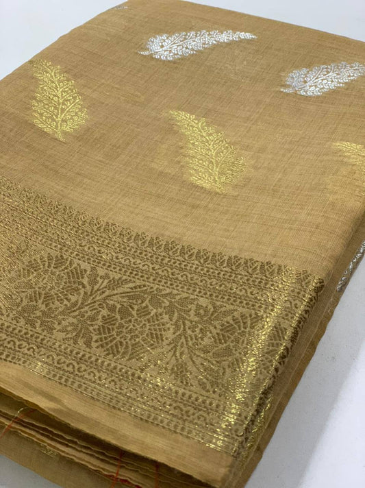 Preety Look Premium Cotton Soft Silk Dark Beige Color Saree.
