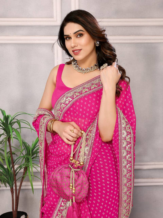 Party Wear Designer Bandhani Print Georgette Chiffon Saree.