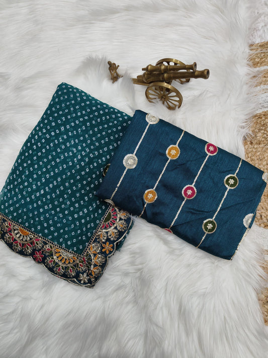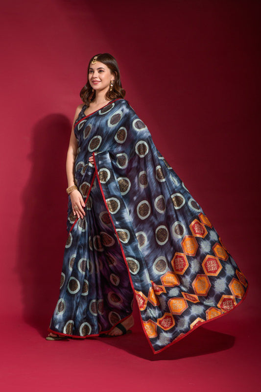 Navy Blue Colors Bandhni Style Pure Silk Saree.