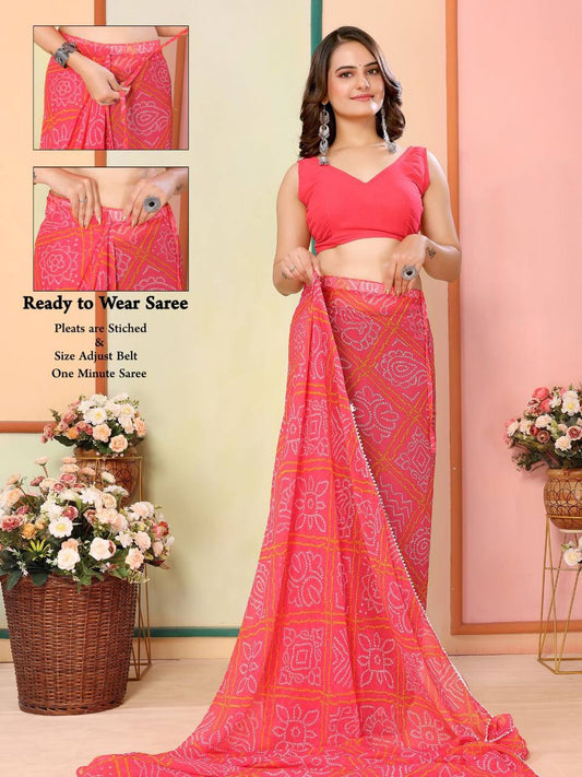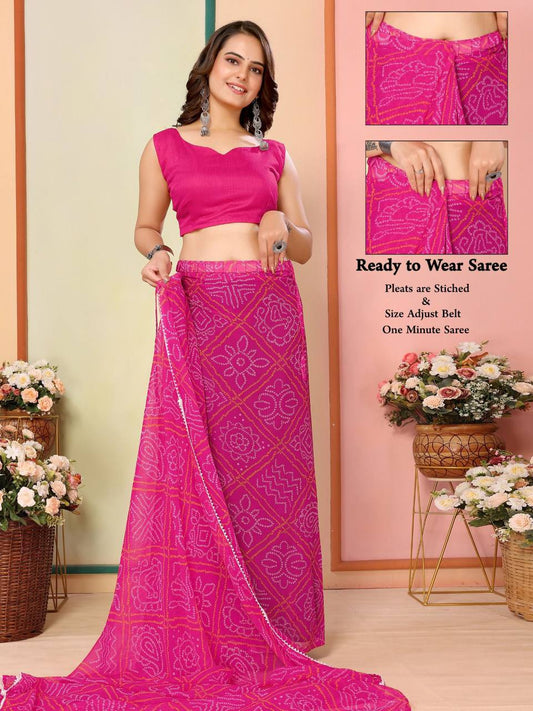 Trendy Bandhani Designer 1-Minute Ready To Wear Saree Collection