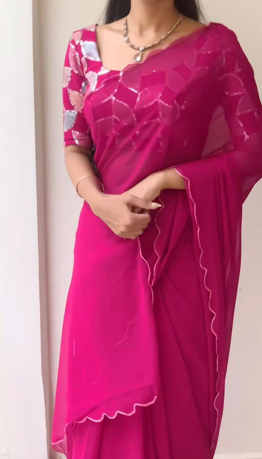 Pretty Dark Pink Premium Georgette Saree Collection.