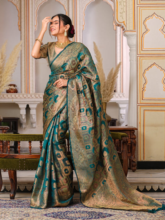 Rama Color Trendy Wedding Function Special Designer Saree Collection.