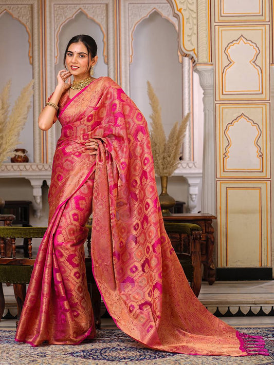 Wedding Function Special Designer Pink Colour Heavy Vichitra Silk Saree Collection.