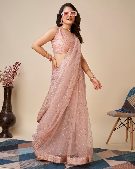 Latest Designer Heavy Soft Net Pink Party Wear Saree.