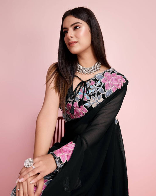 Best Designer Heavy Georgette Party Wear Black Saree.