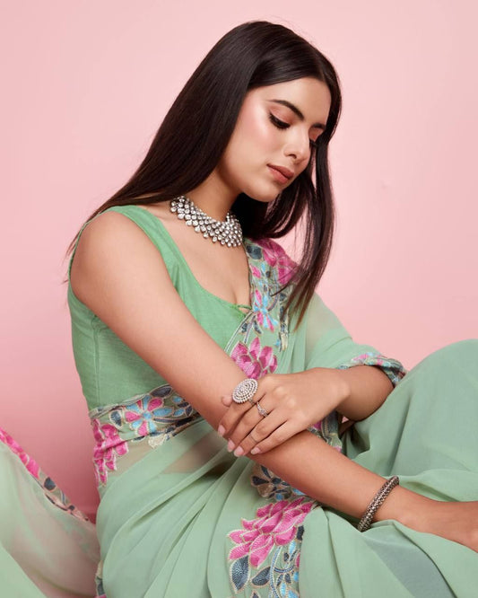 Beautiful weddings Wear Special Heavy Georgette Pista Saree.