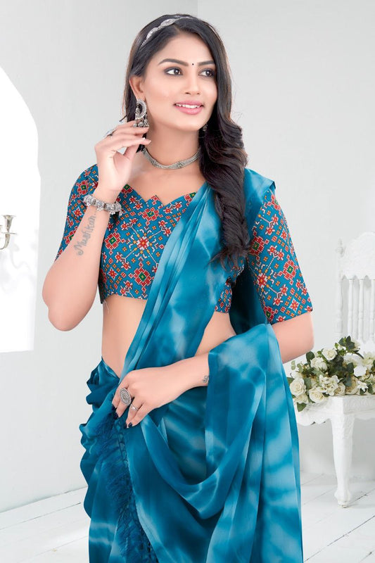 Beautiful Blue Color Party Wear Tie & Die Saree.
