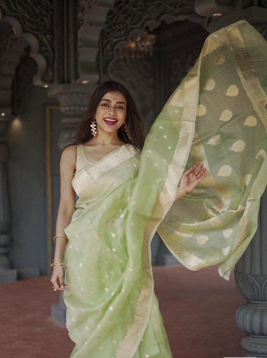 Mehndi Function Special New Designer Soft Organza Silk Saree Collection.