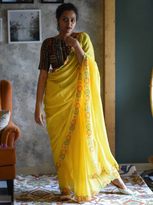 Party Wear Special Crunchy Soft Organza Yellow Saree Collection.