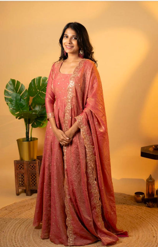 Wedding Wear Special Pure Gold Crush Silk Pink Gown Collection.