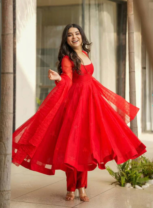 Latest Trendy New Red Anarkali Outfit.