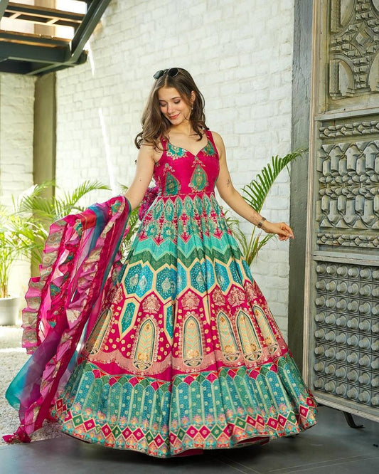 Presenting A New Tebby Silk Laheriya Print Gown With Duppata and Pent.