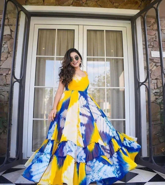 Laheriya Print Ocassion Wear Special Blue Gown.