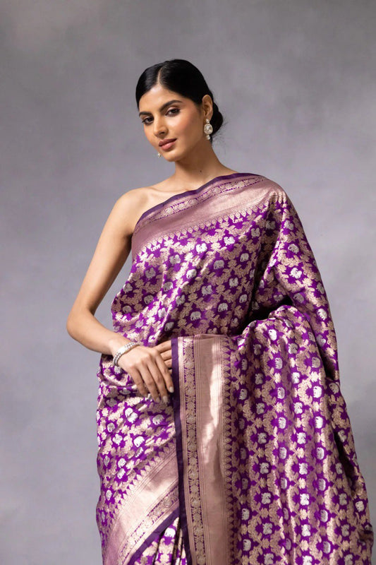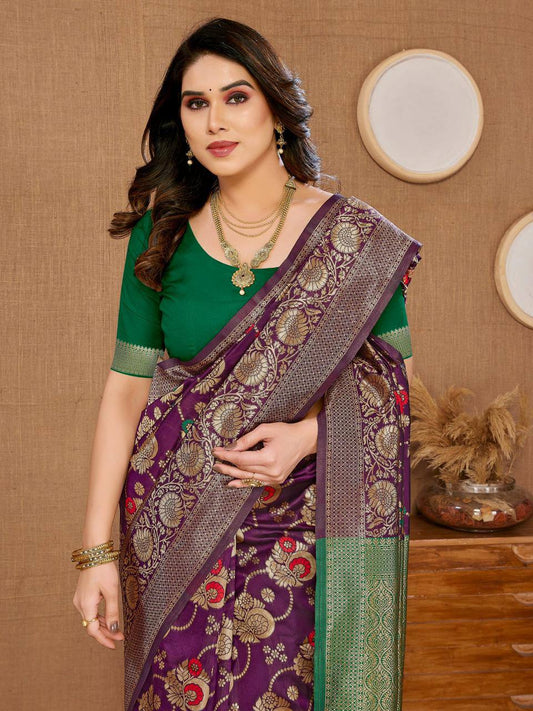 New Latest Banarasi Soft Silk Wine Color Saree.