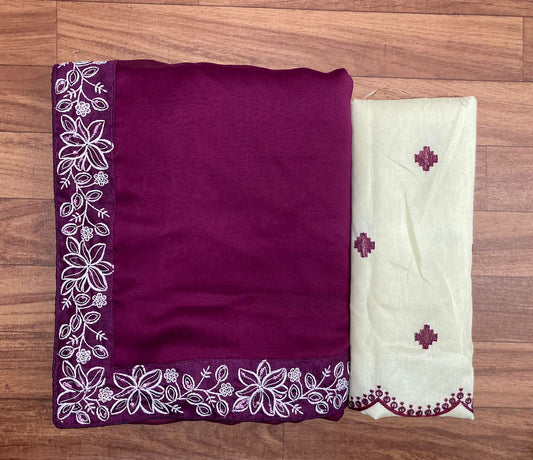 New Designer Banarasi Soft Silk Wine Color Saree.