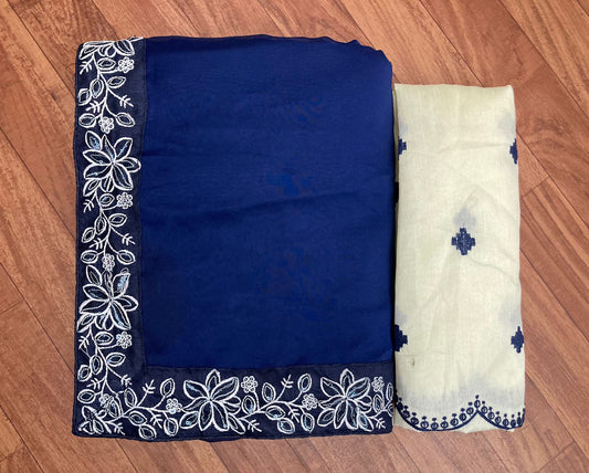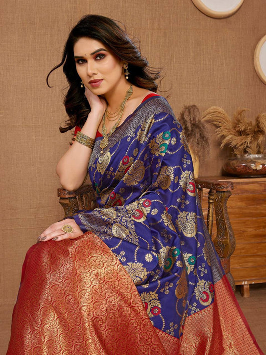 Navy Blue Casual Function Special Rangoli Silk Saree.