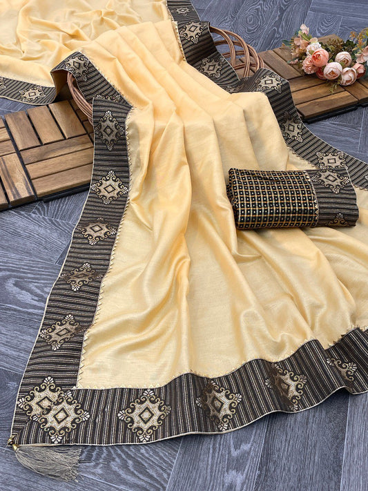 Haldi Functions Special Beautiful Banarasi Soft Silk Saree.