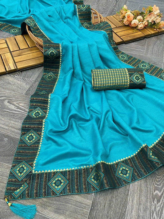 Gorgeous Sky Blue Trendy Saree Collection.