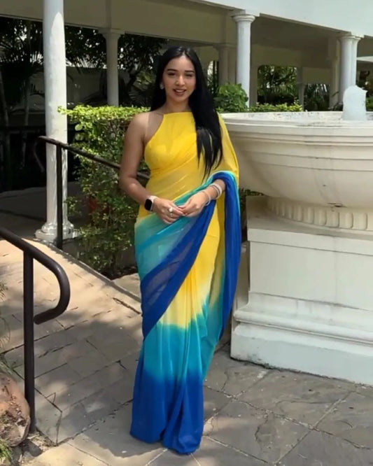 Impressive Most Beautiful Shaded 1 Min Ready To Wear Saree.
