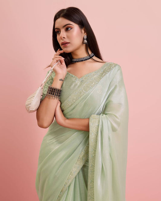 Premium Soft Zimmy Chu Silk Preety Pista Color Saree.