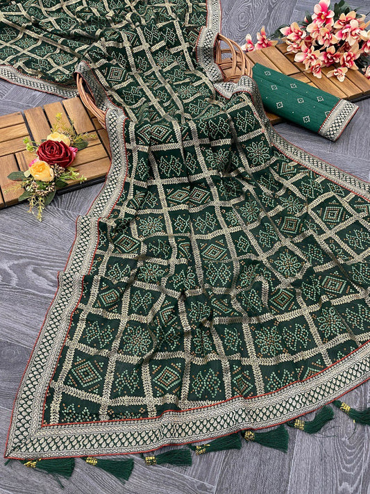 Pretty Green Jaipuri Bandhni Saree Collection.