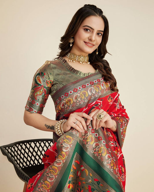 Wedding Seasons Special Kanjivaram Silk Red Color Saree.