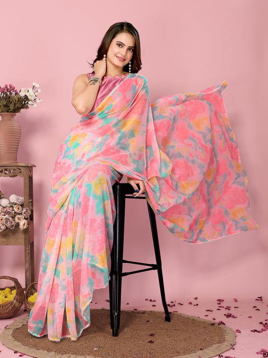 Artistic 1-Minute Ready To Wear Pink Shade Georgette Saree.