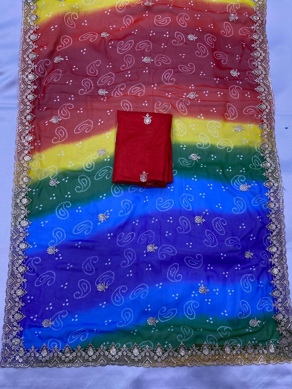 Latest Trendy Multi Colored Bandhani Printed Saree Collection.