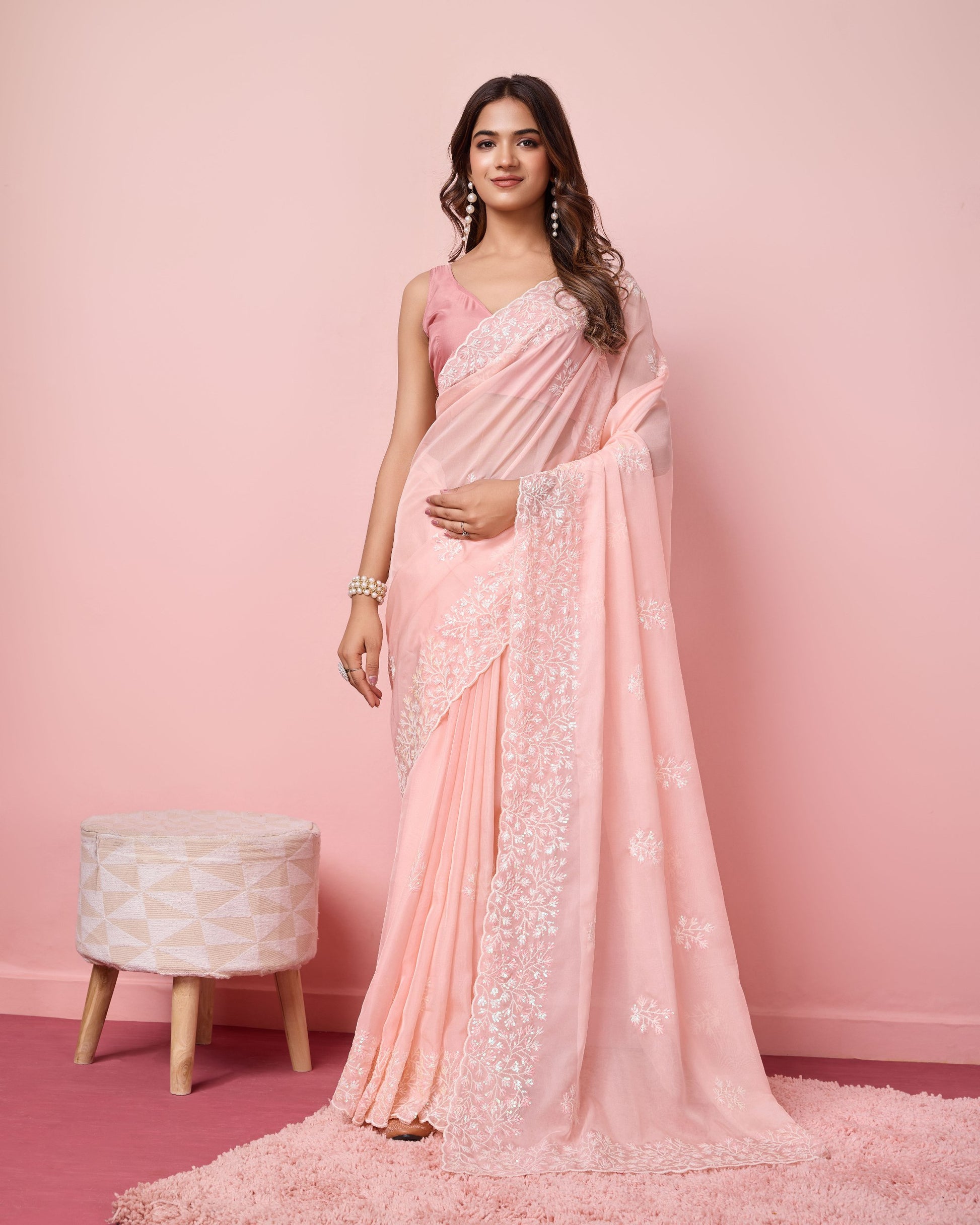 - with C-pallu All Over Embroidery Work Butti & Cutwork