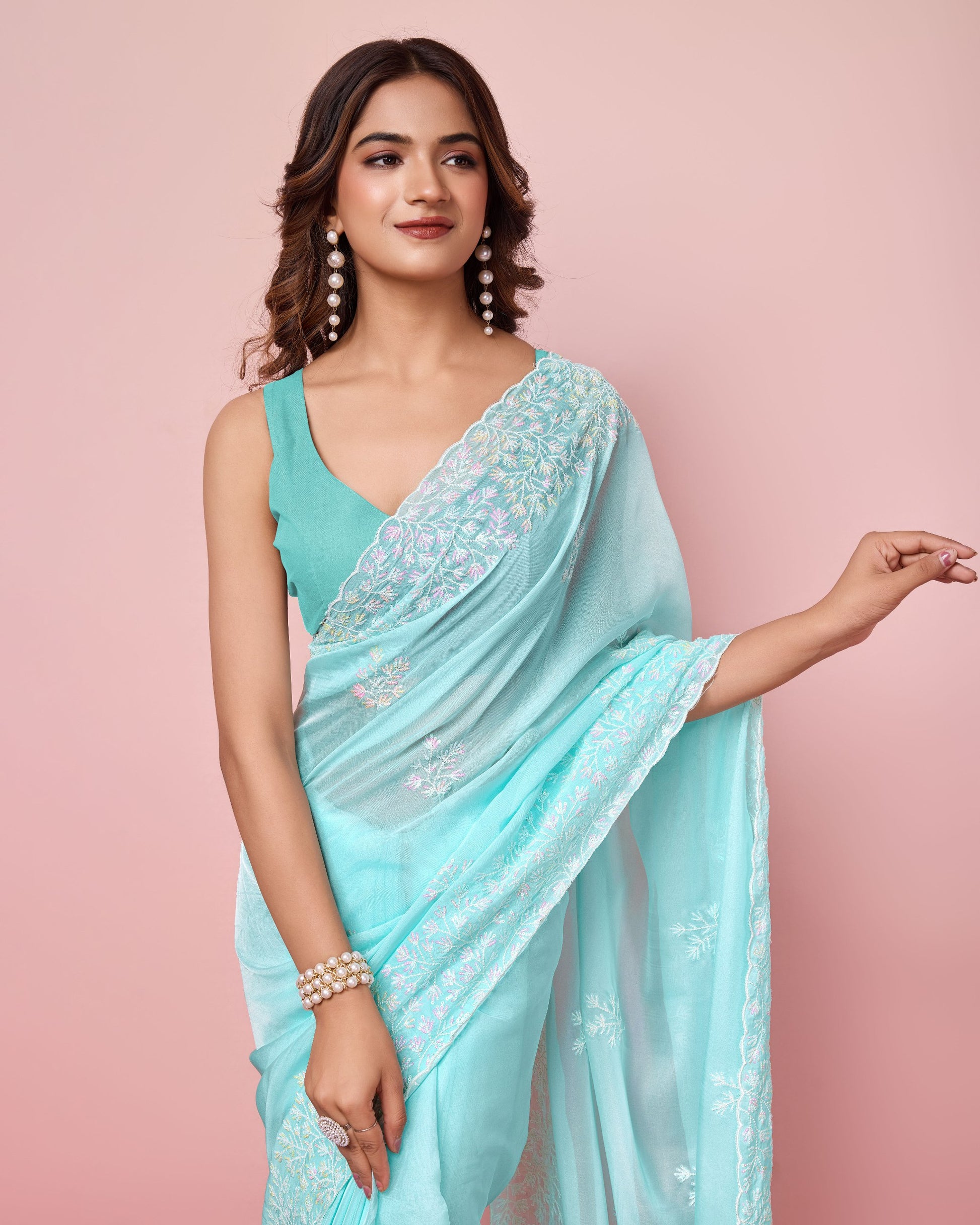 - Tibby silk fabric with beautiful sequence embroidery work